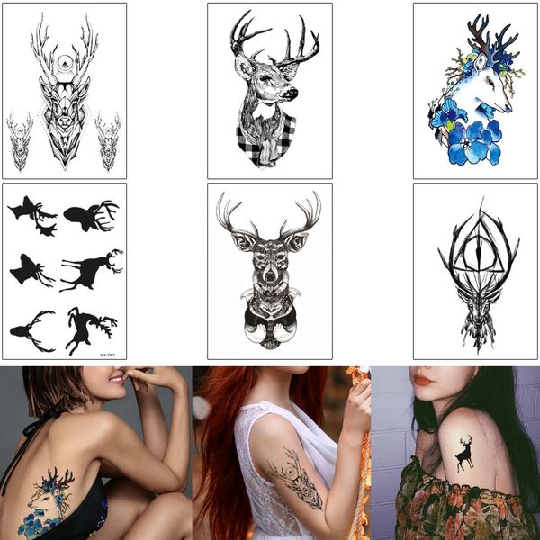 Acheter Beauté Cerf Autocollant De Tatouage Temporaire Art Corps étanche Decal Pour Homme Femme Enfant Bras Retour Maquillage Dété Cadeau Elk Tattoo