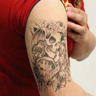 Acheter 1 Feuille Imperméable Tatuagem Big Pocker Crâne Conception Grand Tatouage Temporaire Pour Hommes Femmes Bras Tatouage Conceptions Papillon De