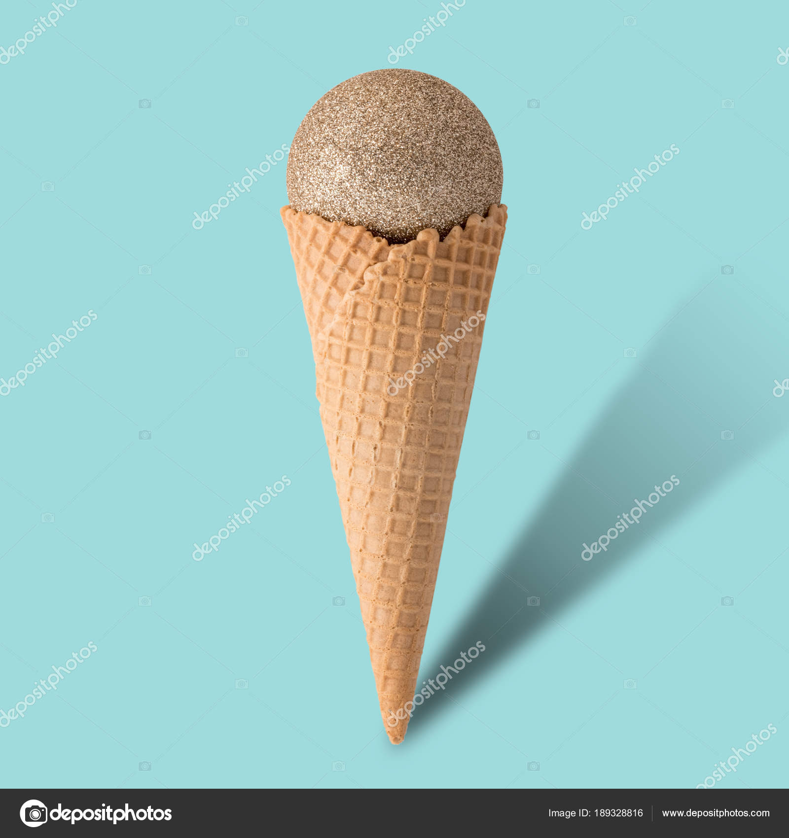 Cornet De Crème Glacée Avec Boule De Noël Sur Fond Bleu